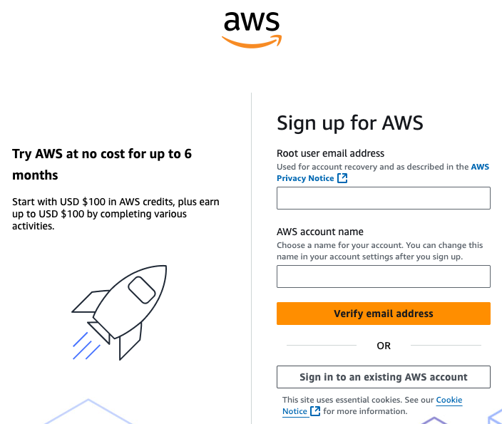 On the next page, you will be prompted to sign up for AWS.